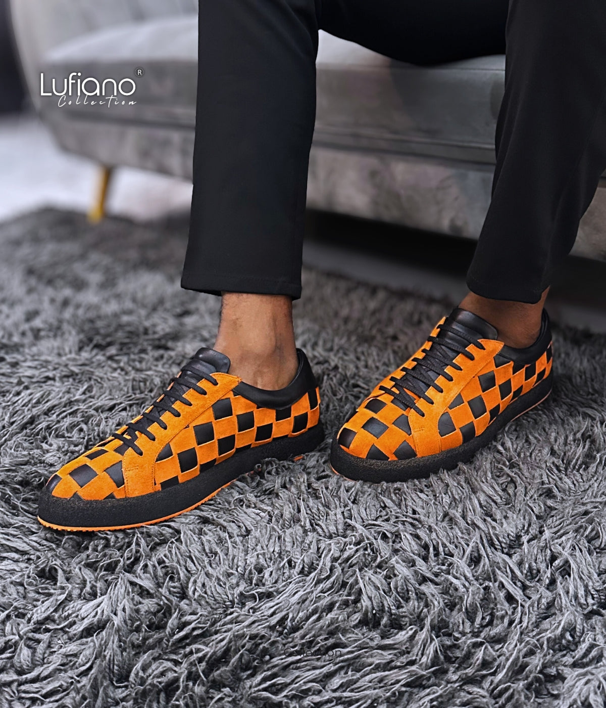Experience refined style with the 244 Hand Weaved Lufiano Lace Up in Black-Orange. Crafted from genuine leather, it offers durability and a luxurious feel. The soft sole ensures exceptional comfort, while the lightweight, hand-woven design adds an elegant touch. Perfect for those who appreciate artistry and sophistication in every step.