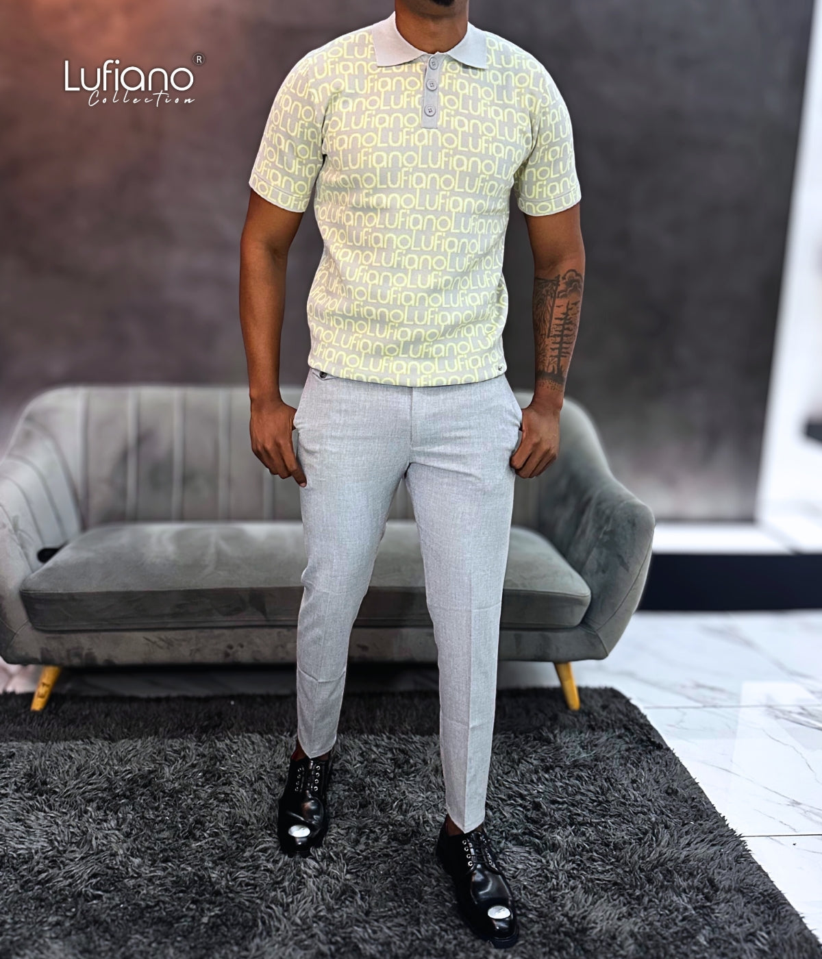 LFN024: Knit Top:Grey-yellow